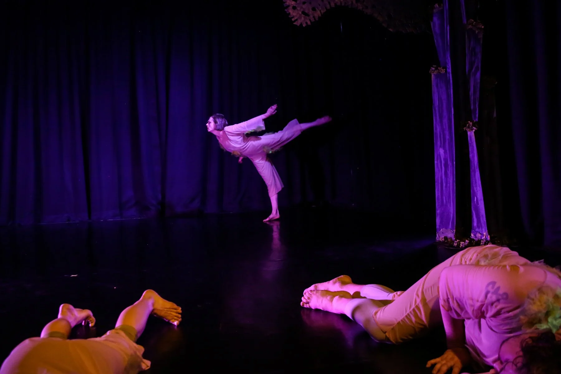 Moss and Other Things is a piece about the coexistence of conflicting experiences. It is about the joy of your child laughing and the simultaneous grief of a loved one lost; going to the park on a perfect afternoon knowing war is ravaging families across oceans; humor and rage bubbling up next to each other. It explores the moments of transcendence in which we move between the everyday and the vast unknown. This work pulls its aesthetic language from a recent trip to Iceland where we wandered lava fields in which soft vibrant moss grew on the hardened, cooled, molten core of the earth, the calm evidence of the Earth’s explosive power.
